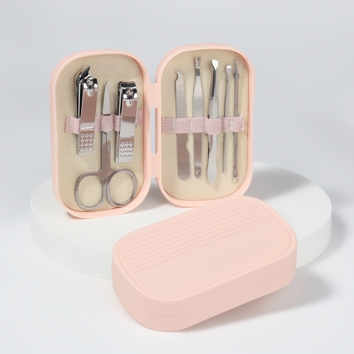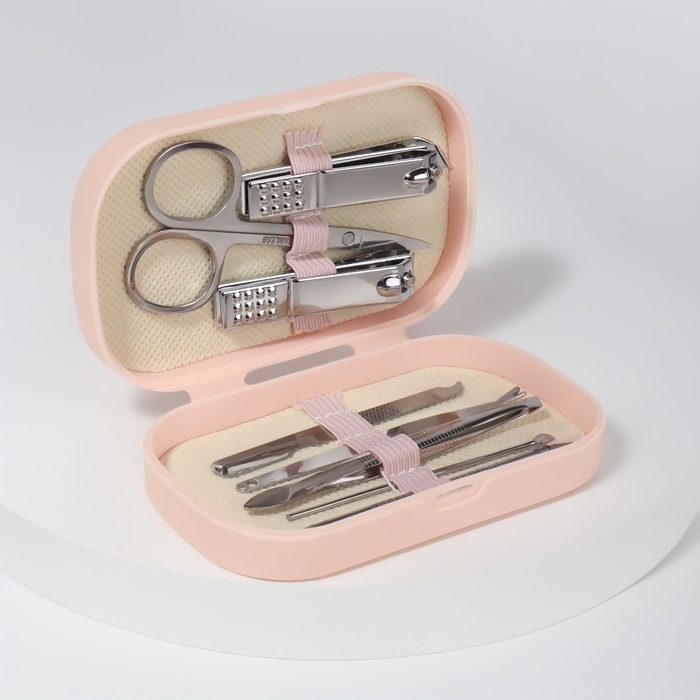 Набор маникюрный, 8 предметов, в пластиковом футляре, цвет розовый