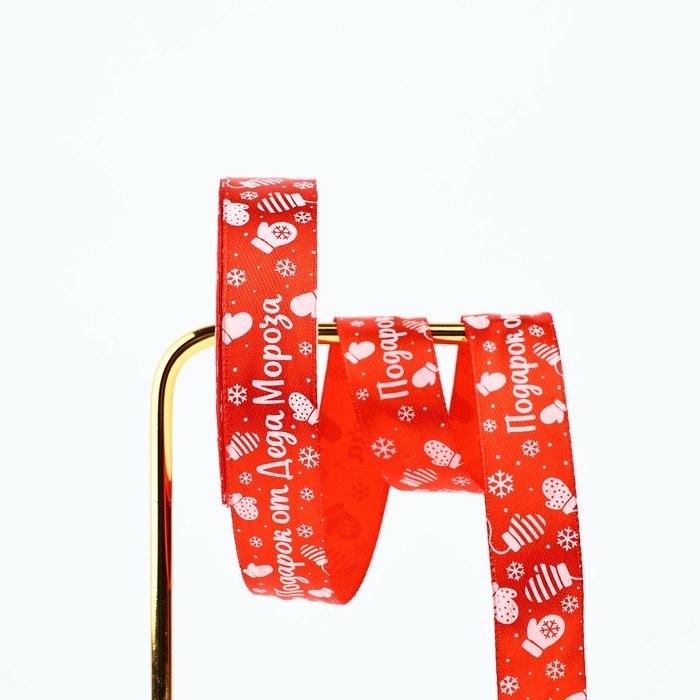 Лента атласная «Подарок от Деда Мороза», красная, 2 см х 5 м, Новый год