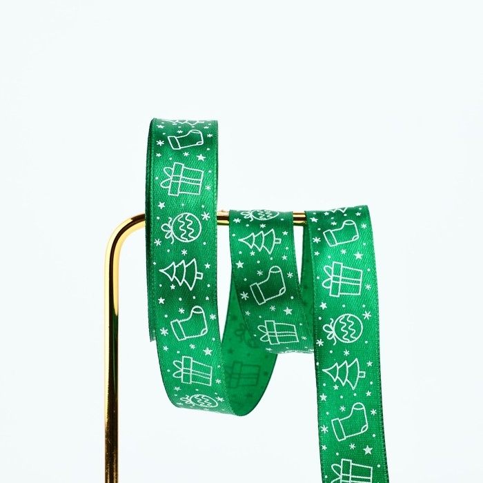 Лента атласная «Новогодняя», зелёная, 2 см х 5 м, Новый год