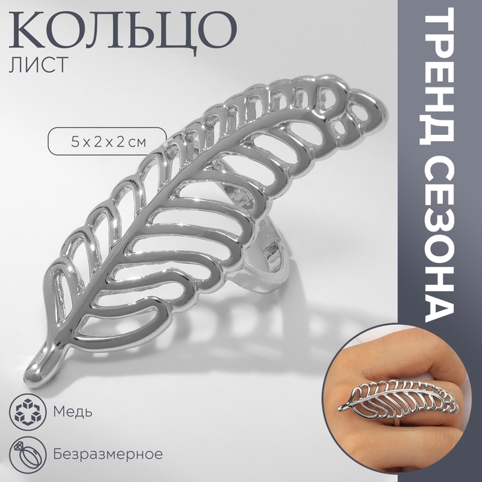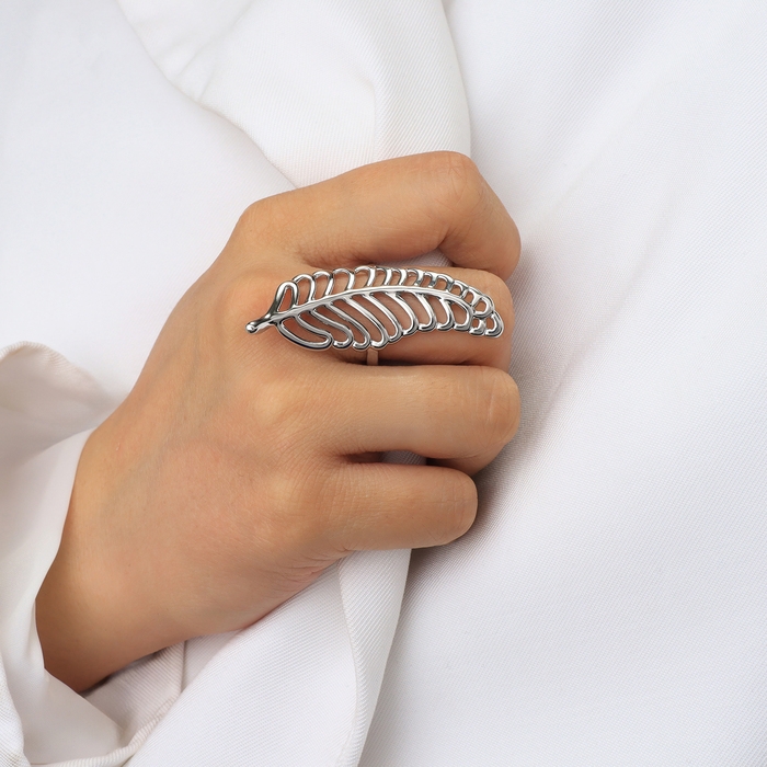 Кольцо металл «Лист» папоротника, цвет серебро, безразмерное