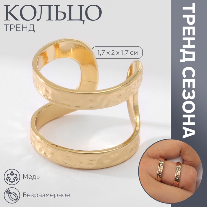 Кольцо металл «Тренд» три полосы, кратеры, цвет золото, безразмерное