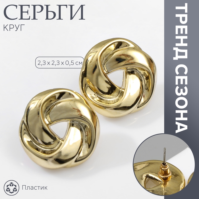 Серьги пластик «Круг» с изгибами, цвет золото