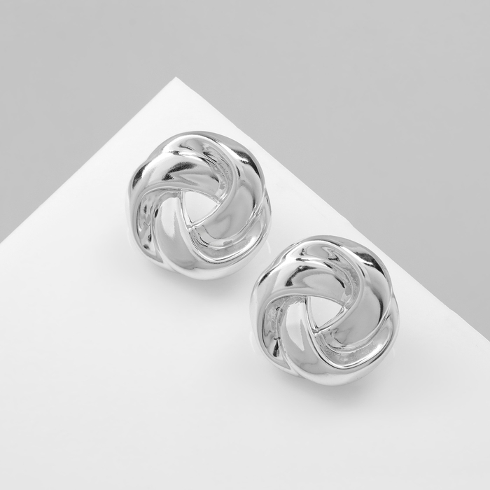 Серьги пластик «Круг» с изгибами, цвет серебро
