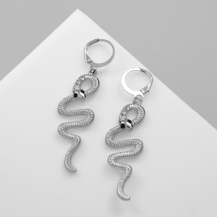 Новый год! Символ года 2025! Серьги металл «Змея» завёрнутая, цвет белый в серебре