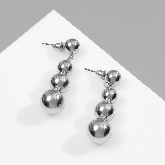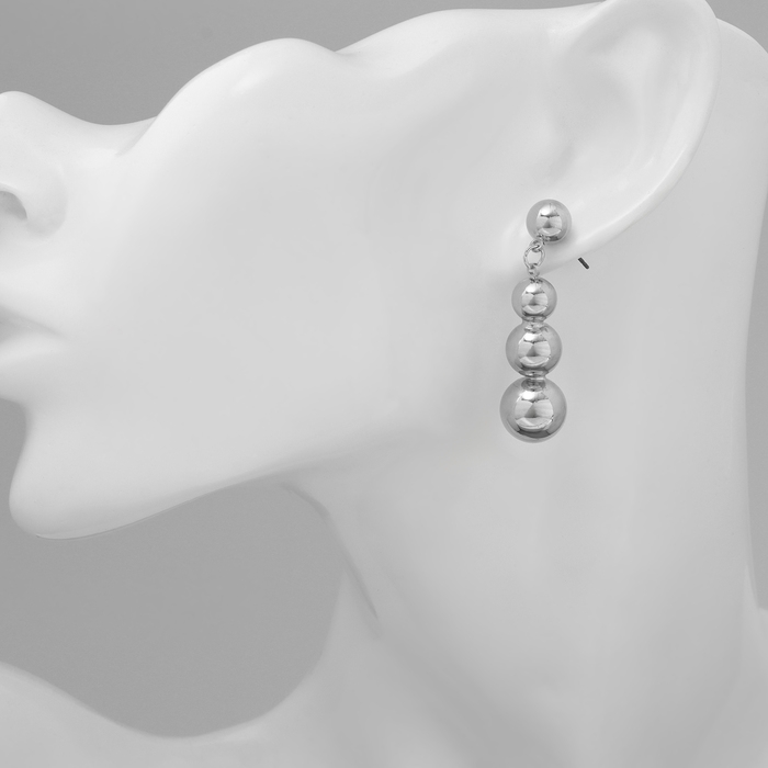 Серьги пластик «Бусины» на уменьшение, цвет серебро