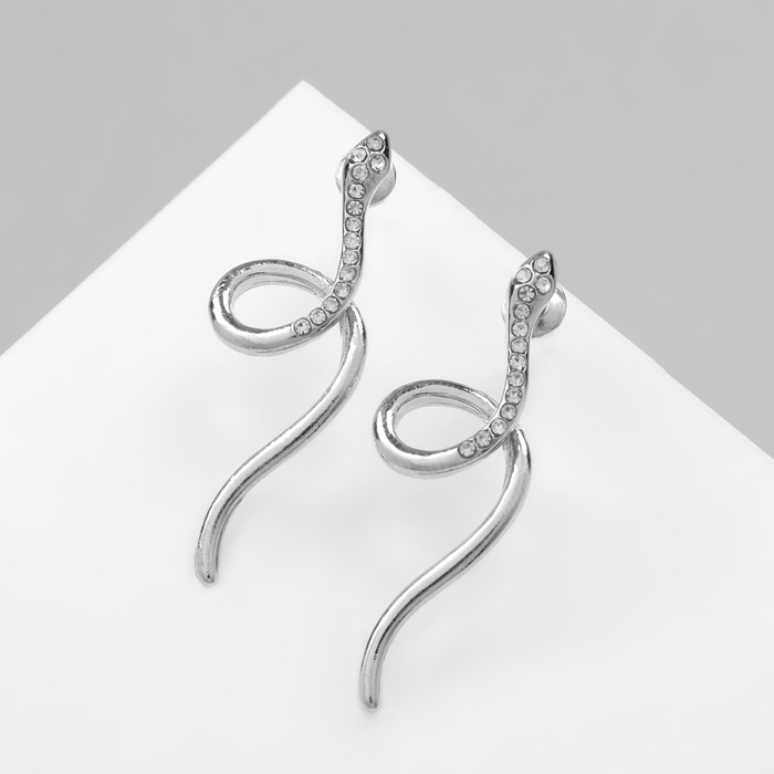 Новый год! Символ года 2025! Серьги со стразами «Змейка» спираль мини, цвет белый в серебре