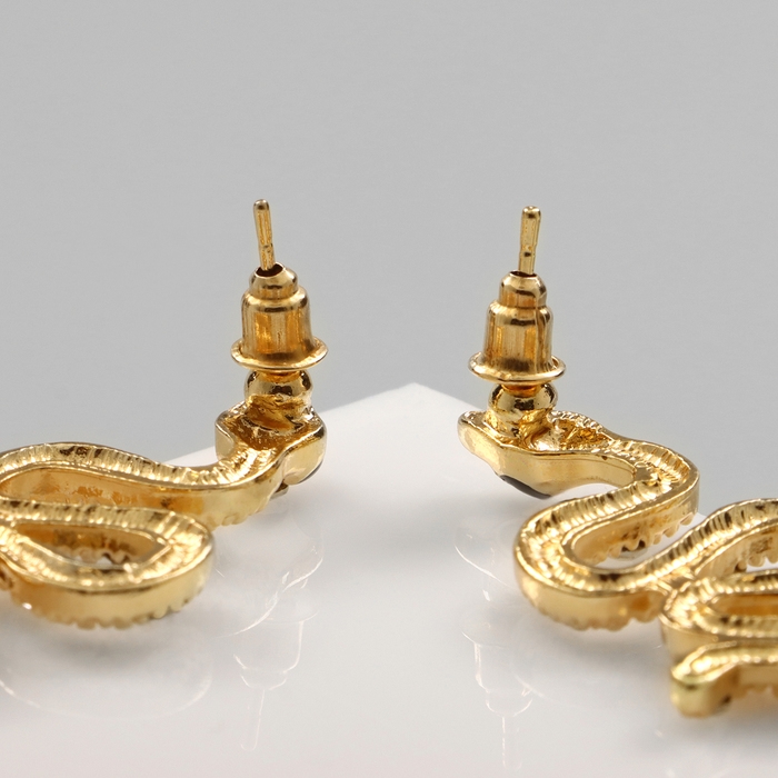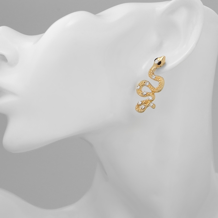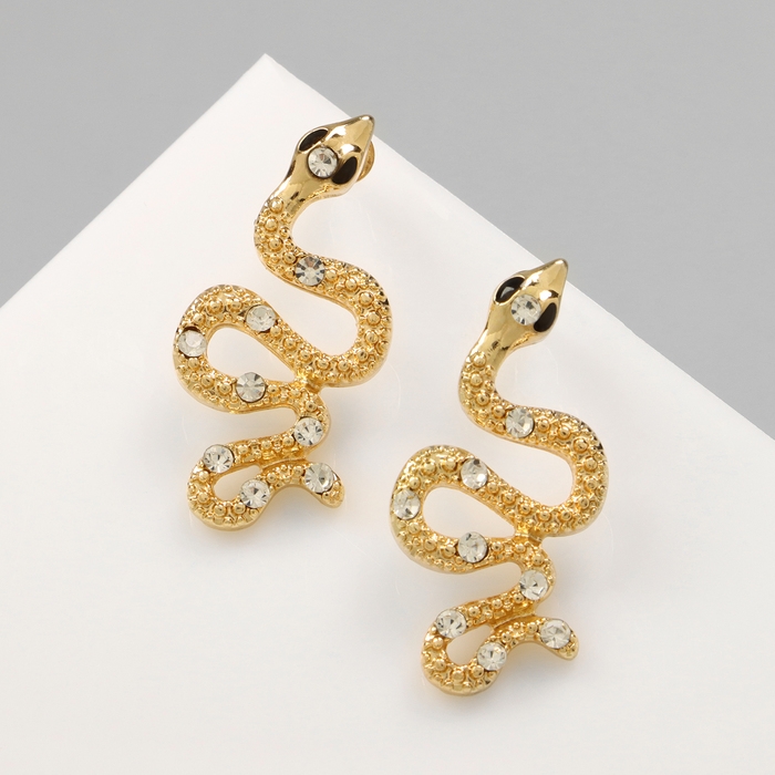 Новый год! Символ года 2025! Серьги со стразами «Змейка» эстетика, цвет белый в золоте