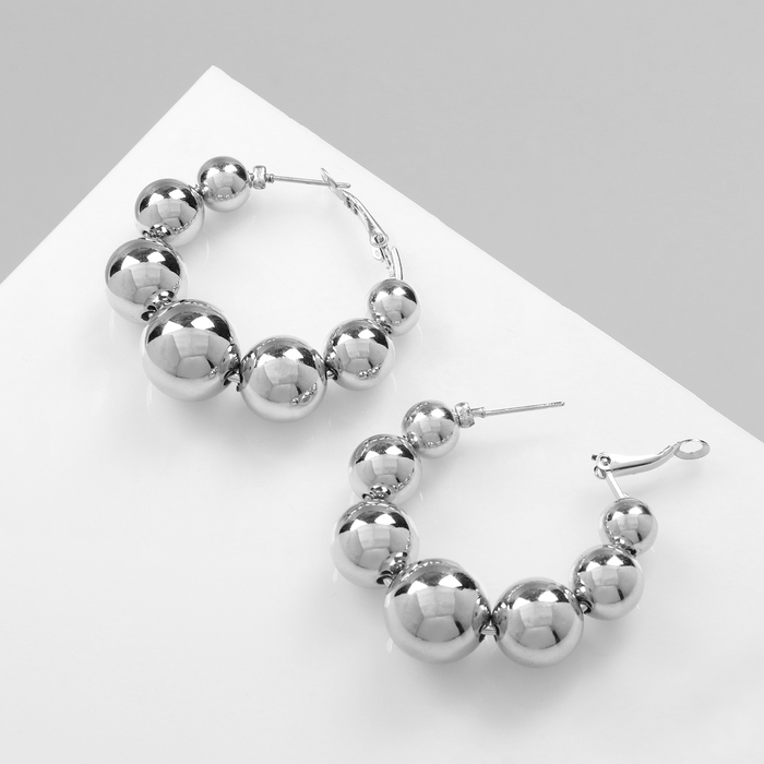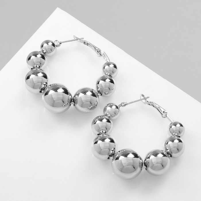 Серьги-кольца «Бусины» на уменьшение, цвет серебро
