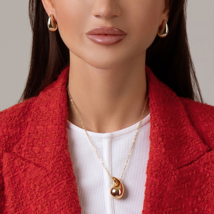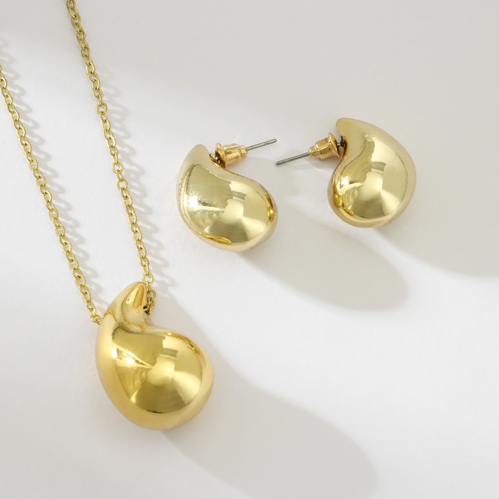 Гарнитур 2 предмета: серьги, кулон «Капля», цвет золото, 40 см