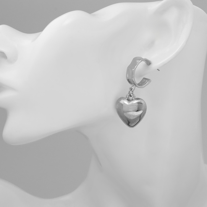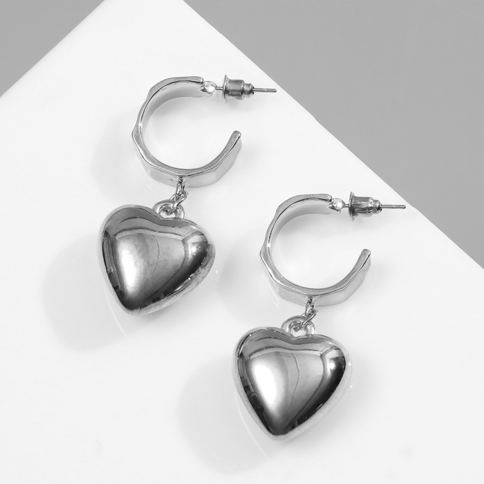 Серьги пластик «Сердца» объёмные, цвет серебро