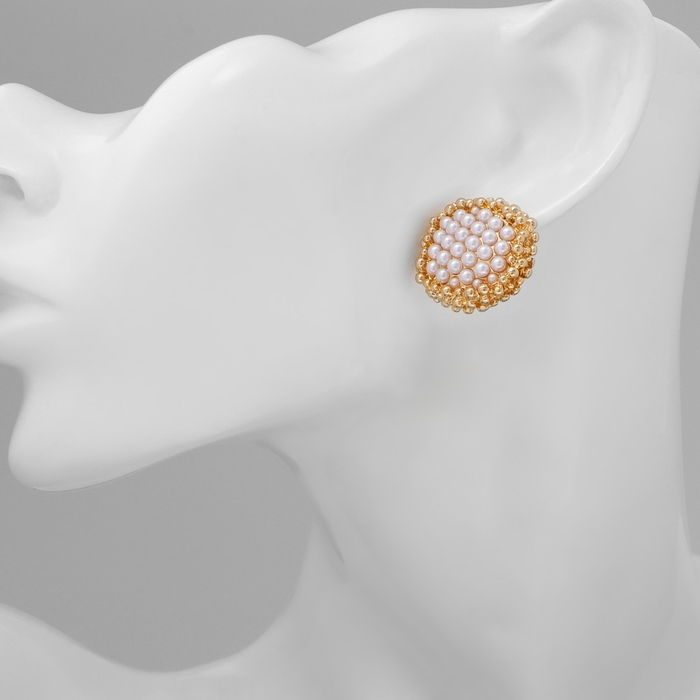 Серьги с жемчугом «Атмосфера» бусинки, цвет белый в золоте