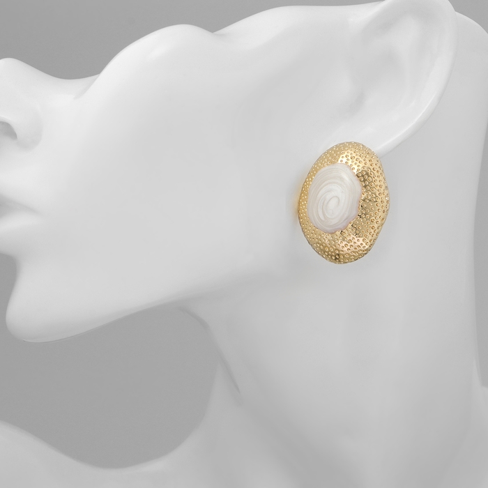 Серьги с жемчугом «Абстракция» жемчужная ракушка, цвет белый в золоте