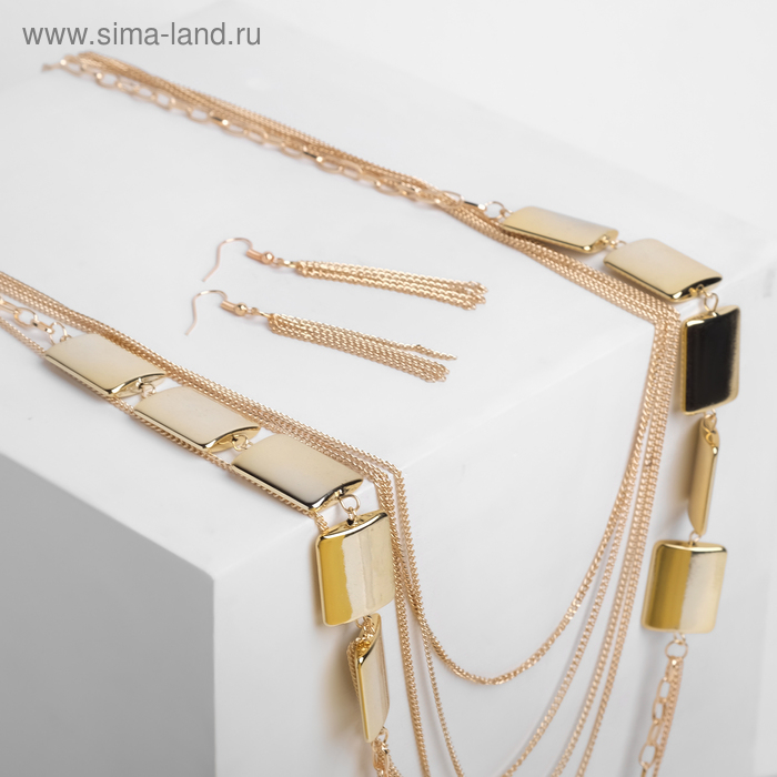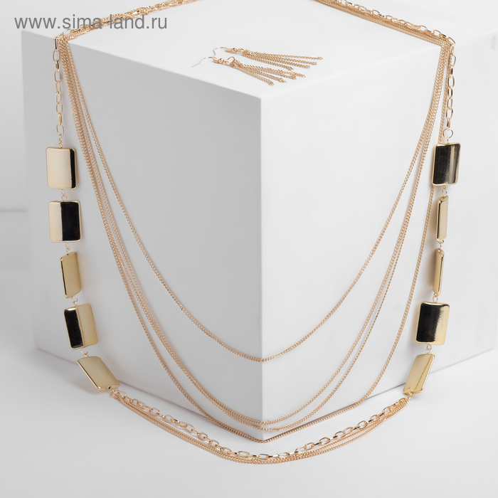 Набор 2 предмета: серьги, бусы «Унисон» прямоугольники, цвет золото, 80 см