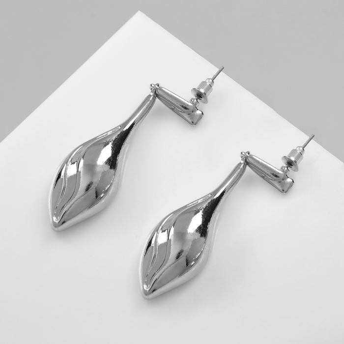 Серьги металл «Абстракция» свёрнутый лист, цвет серебро