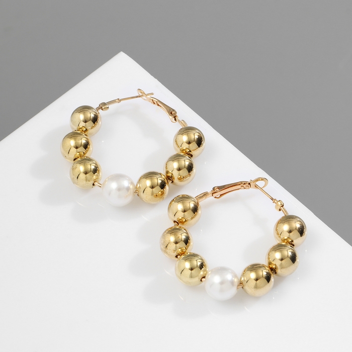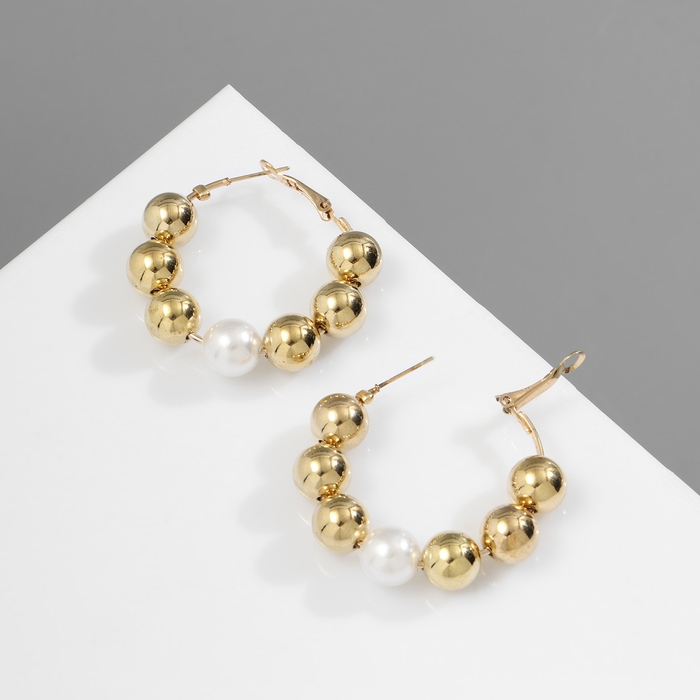 Серьги-кольца «Бусины» соединение, цвет белый в золоте