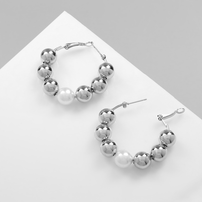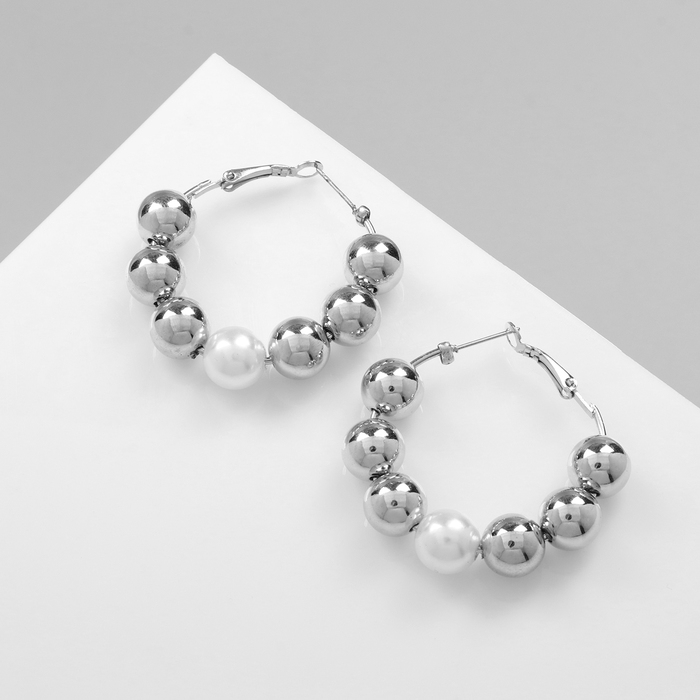 Серьги-кольца «Бусины» соединение, цвет белый в серебре