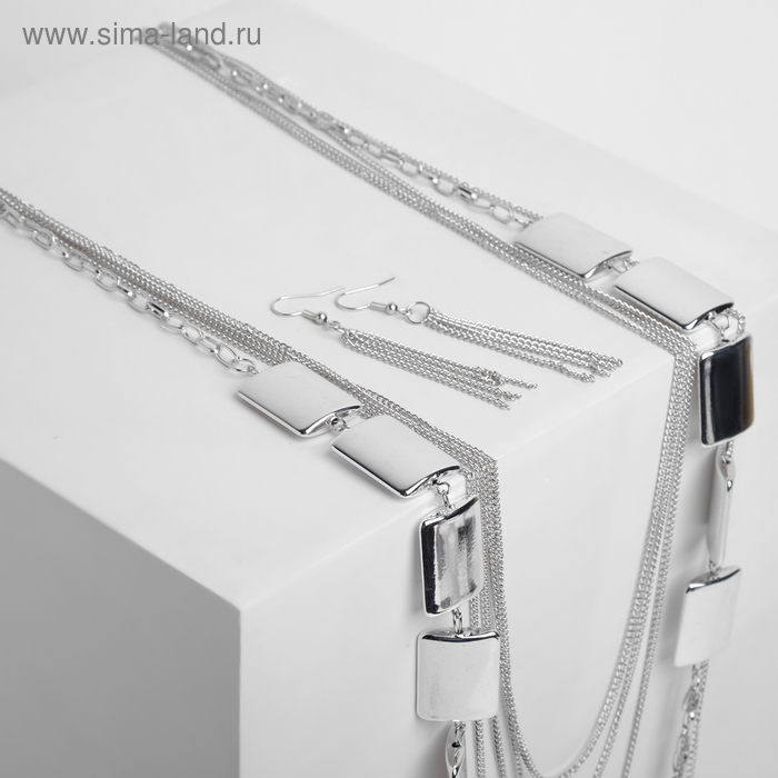 Набор 2 предмета: серьги, бусы «Унисон» прямоугольники, цвет серебро, 80 см