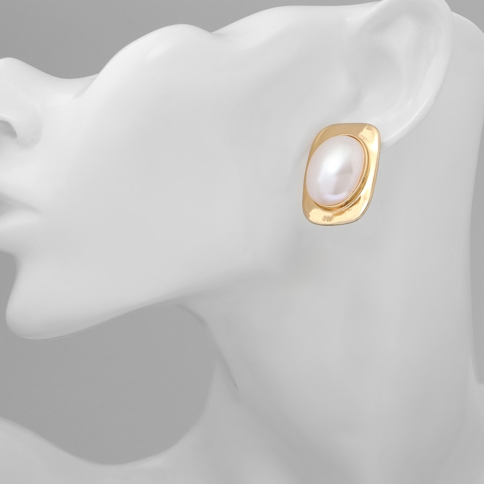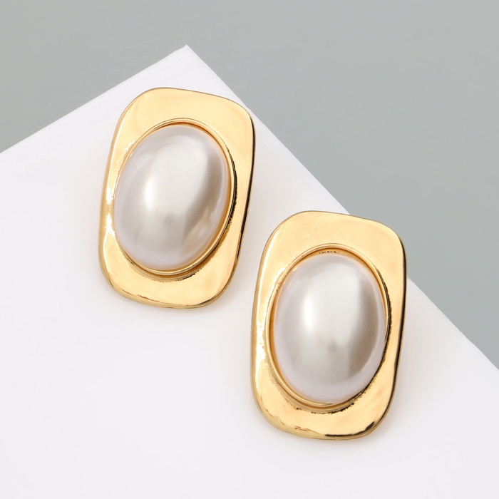Серьги с жемчугом «Атмосфера» прямоугольник, цвет белый в золоте