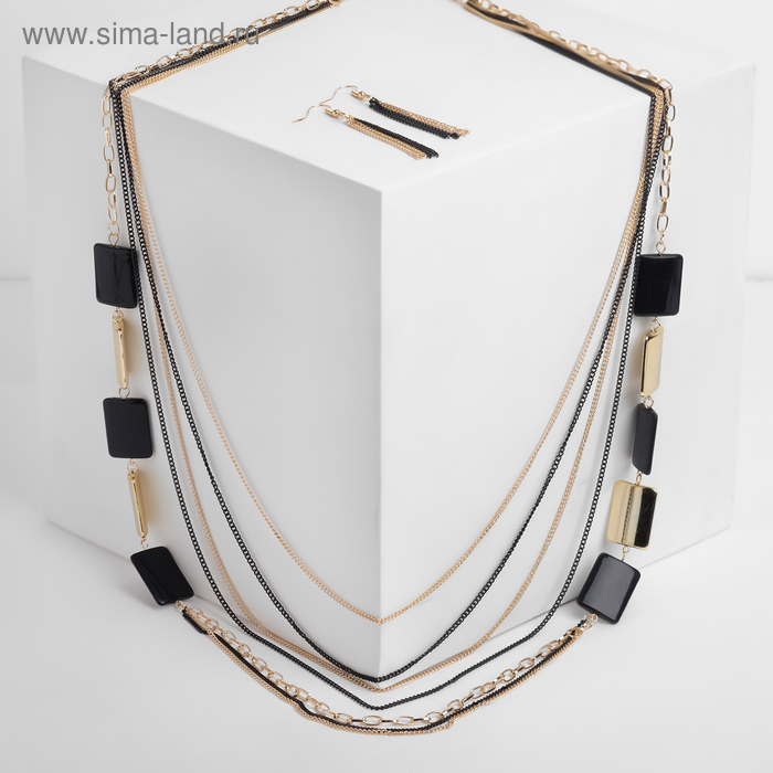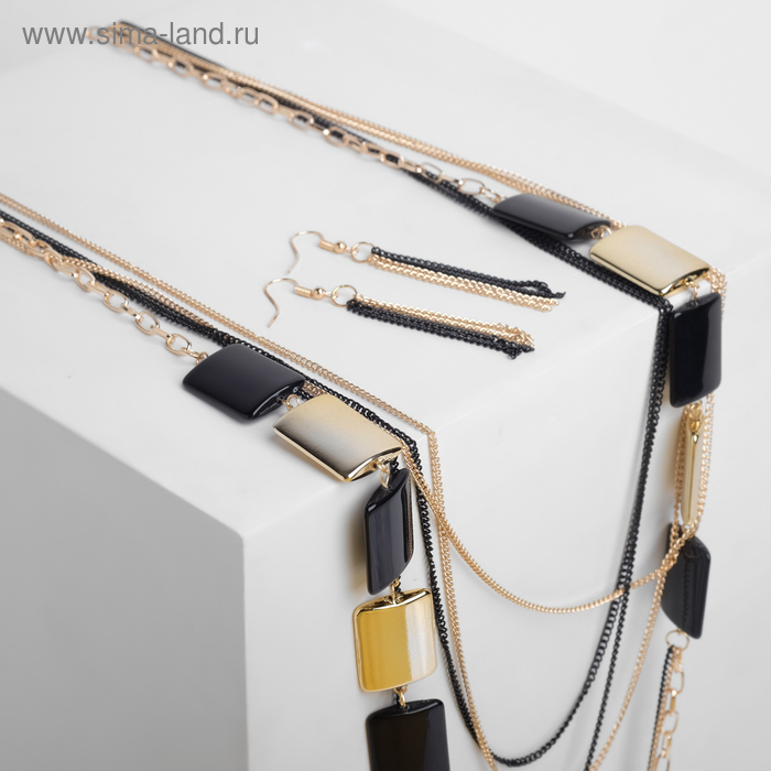 Набор 2 предмета: серьги, бусы «Унисон» прямоугольники, цвет чёрный в золоте, 80см