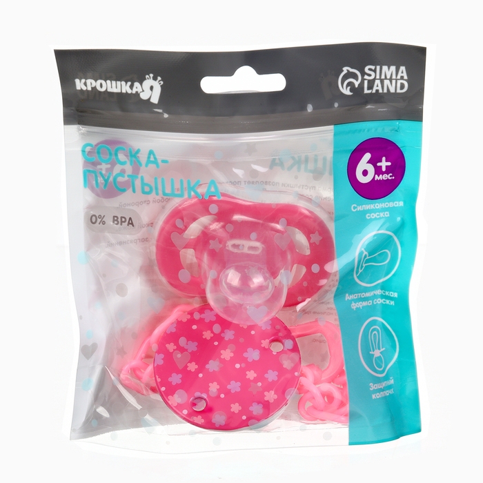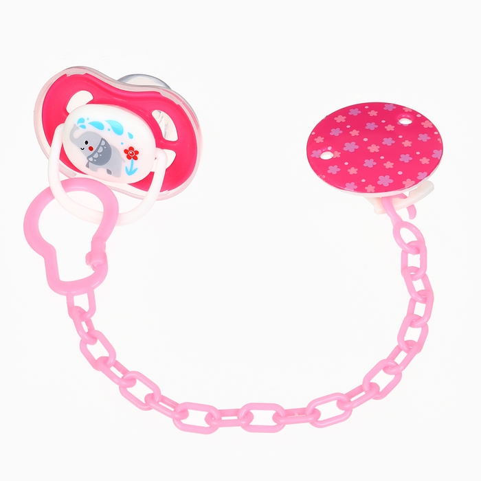 Набор: Соска - пустышка с держателем «Слоник», анатомическая +6 мес, цвет розовый