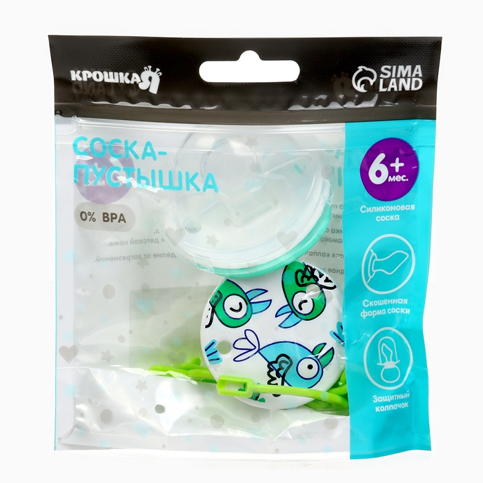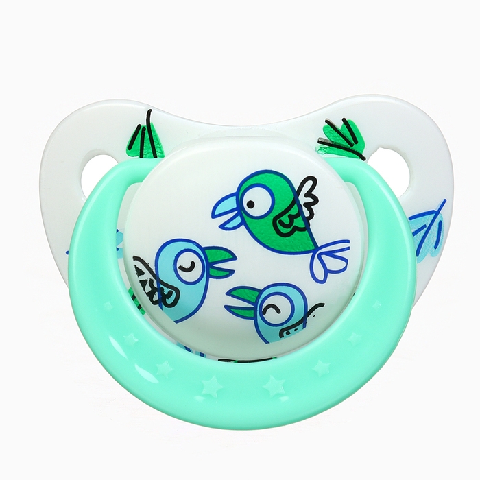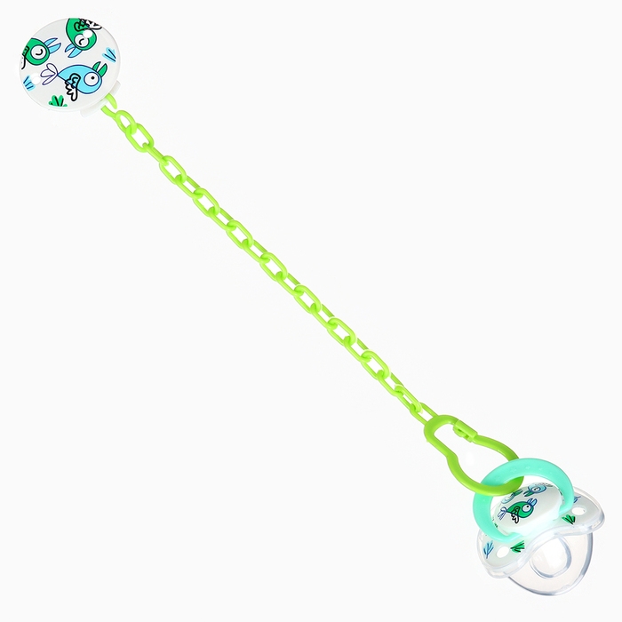 Набор: Соска - пустышка с держателем «Птички», ортодонтическая, +6 мес, цвет зеленый