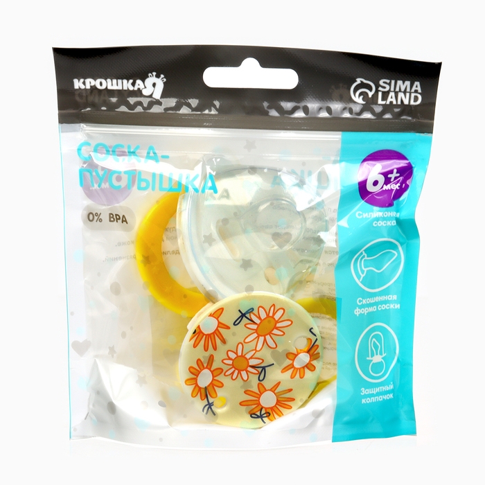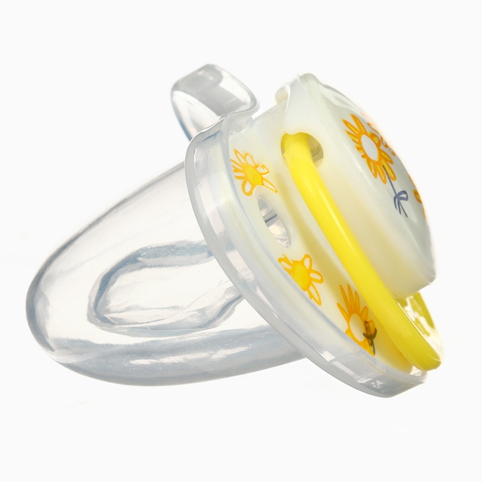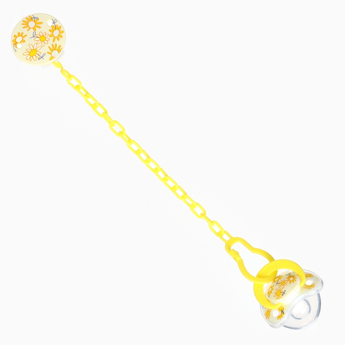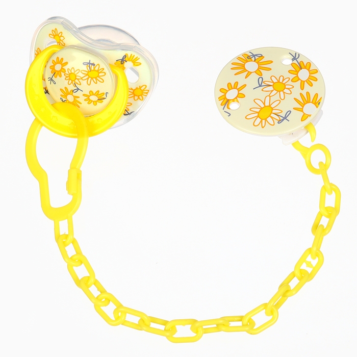 Набор: Соска - пустышка с держателем «Цветы», ортодонтическая, +6 мес, цвет желтый