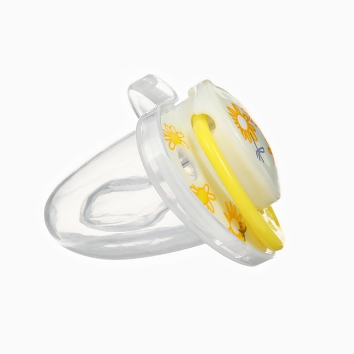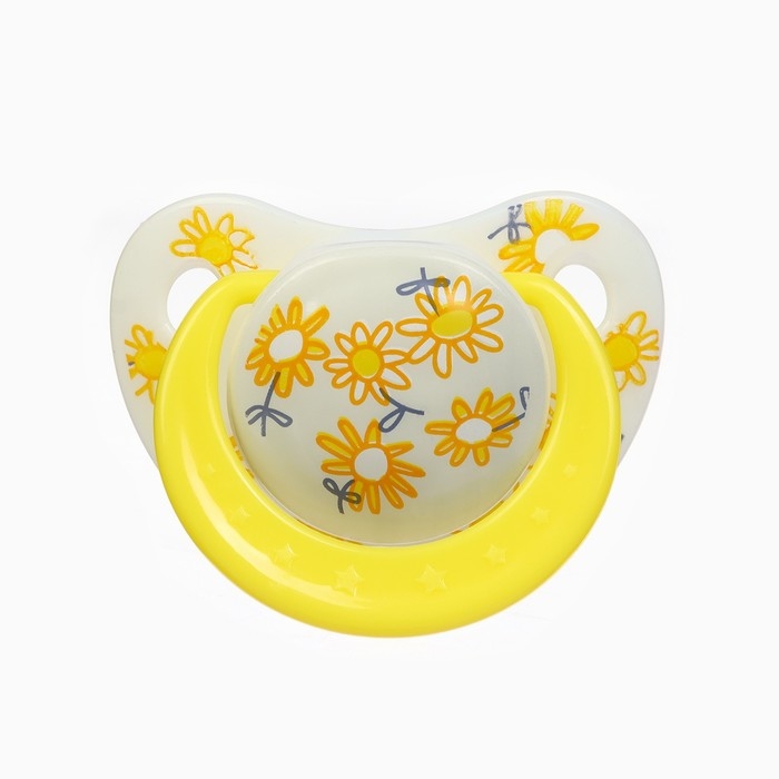 Соска - пустышка ортодонтическая «Цветы», +6 мес., цвет желтый
