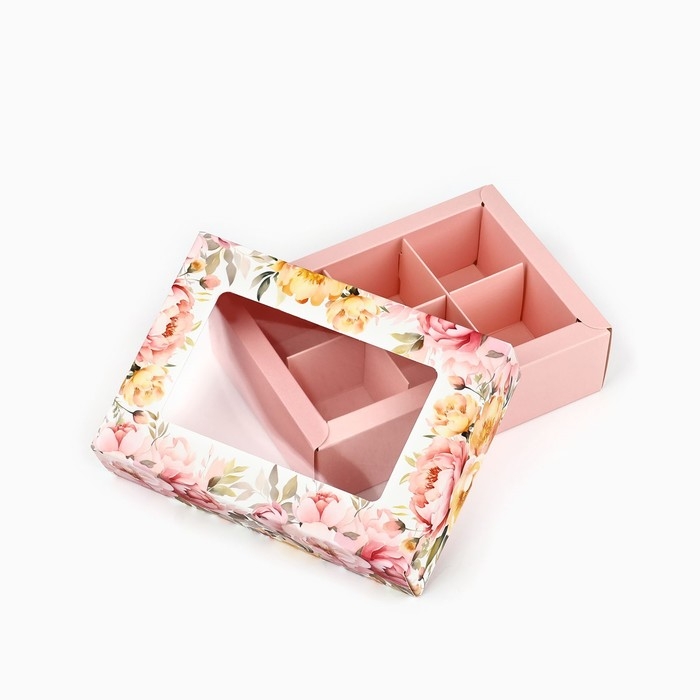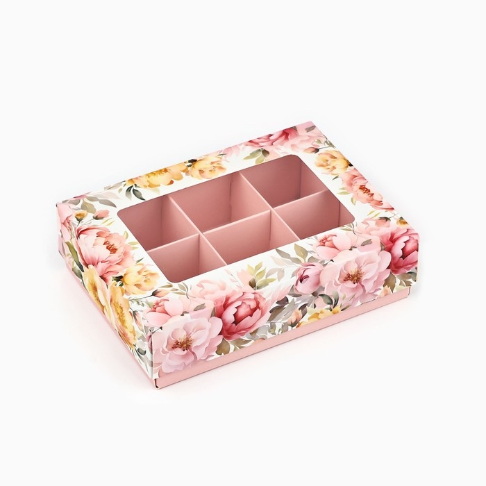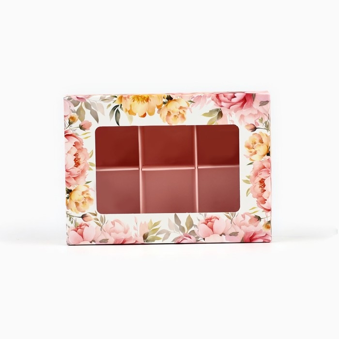 Коробка складная под 6 конфет «Цветы», 13,5 х 9,8 х 3,8 см