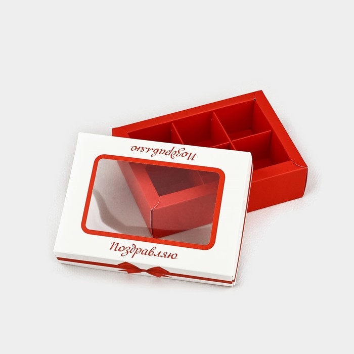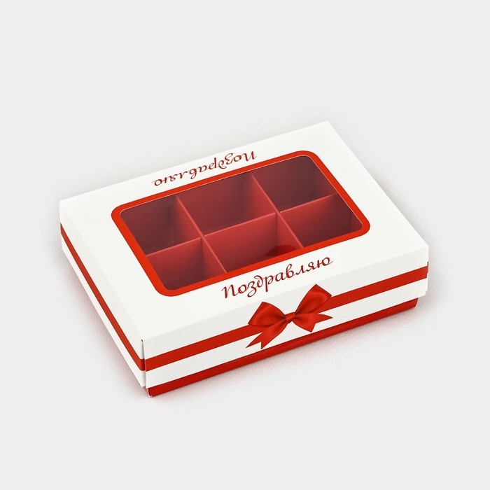 Коробка складная под 6 конфет «Поздравляю», 13,5 х 9,8 х 3,8 см