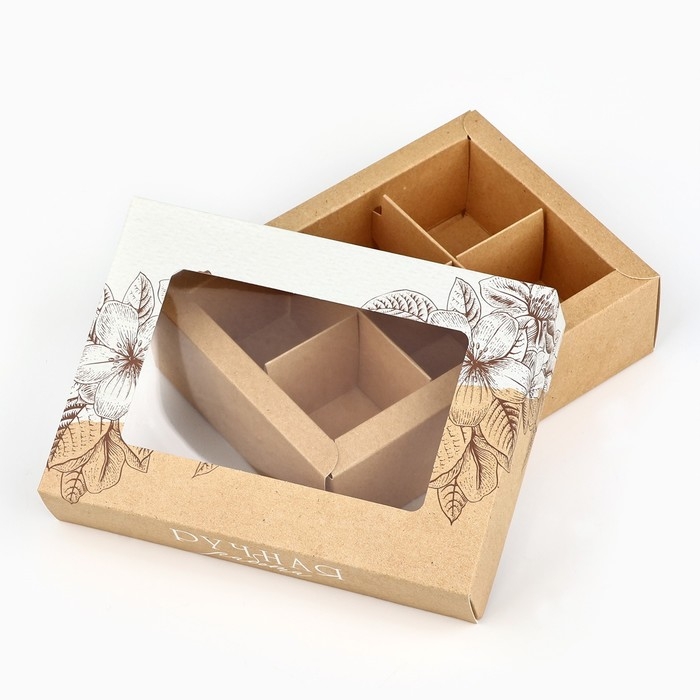 Коробка складная под 6 конфет «Ручная работа», 13,5 х 9,8 х 3,8 см