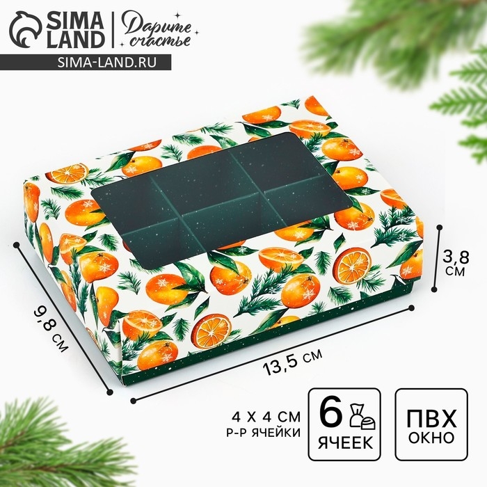 Коробка складная под 6 конфет «Мандаринки», 13.5 х 9.8 х 3.8 см, Новый год