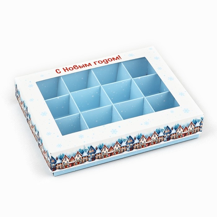Коробка складная под 12 конфет «Снежный городок», 14.4 х 18.4 х 3.8 см, Новый год