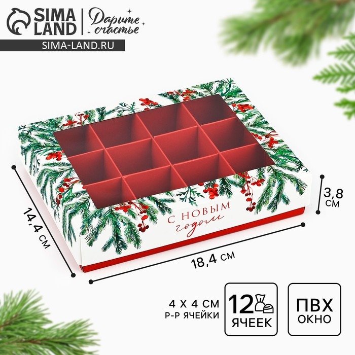Коробка складная под 12 конфет «Новогодний аромат», 14.4 х 18.4 х 3.8 см, Новый год