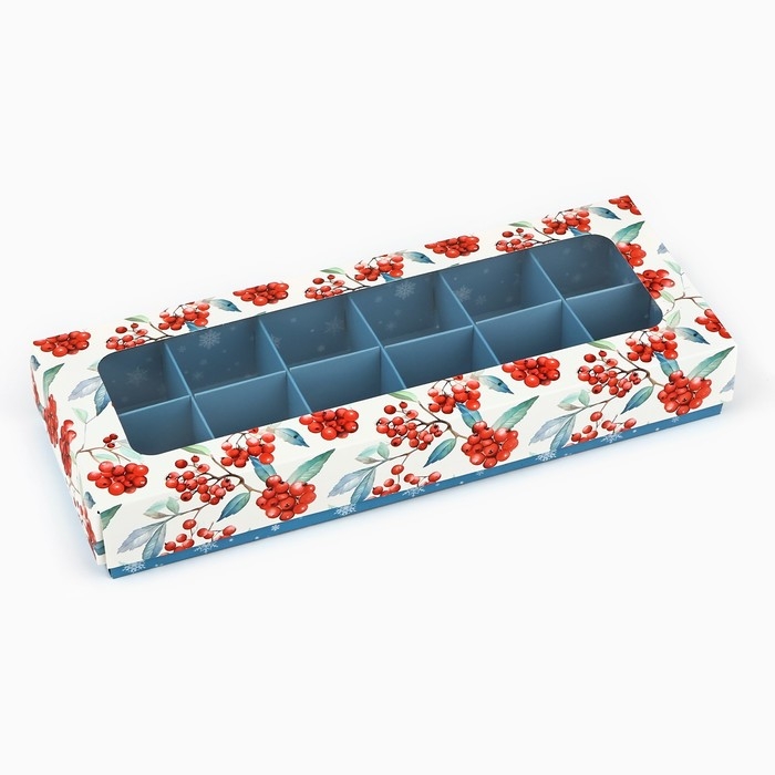 Коробка складная под 12 конфет «Рябина», 3.8 х 10.5 х 26.5 см, Новый год