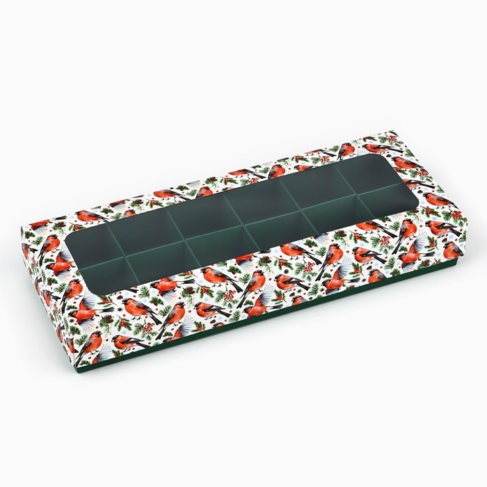 Коробка складная под 12 конфет «Снегири», 3.8 х 10.5 х 26.5 см, Новый год