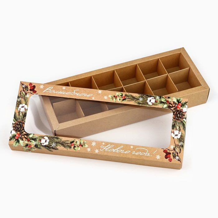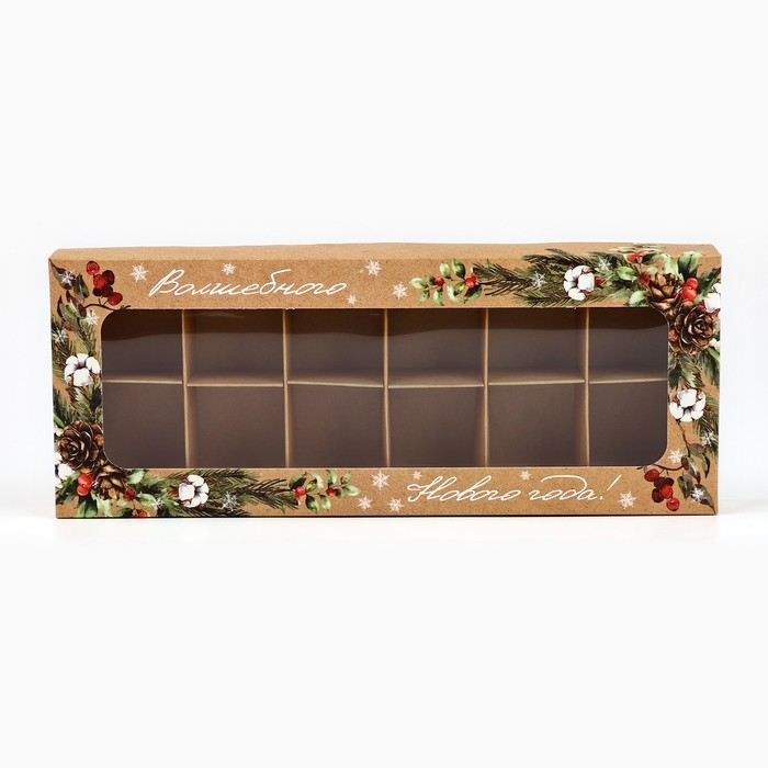 Коробка складная под 12 конфет «Новогодняя ботаника», 3.8 х 10.5 х 26.5 см, Новый год