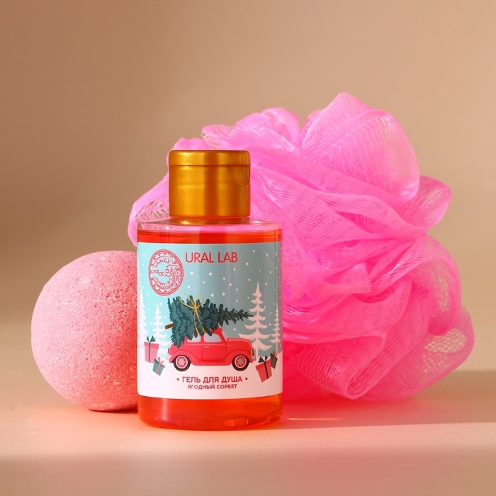 Новый Год. Подарочный набор косметики новогодний, гель для душа 100 мл, бомбочка для ванны 130 г, мочалка для тела