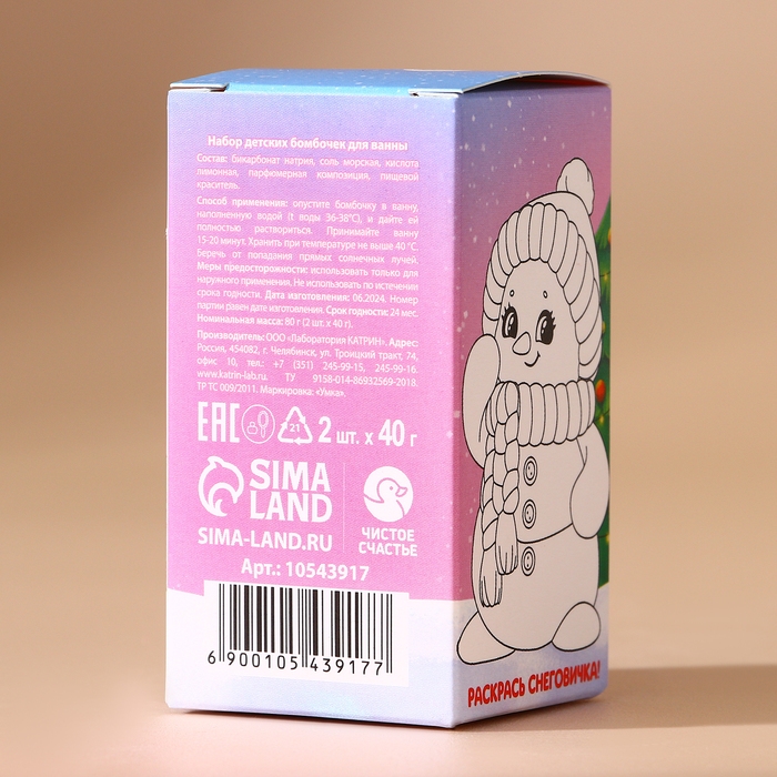 Новый Год. Подарочный набор новогодний детский, бомбочки для ванны, 2 х 40 г