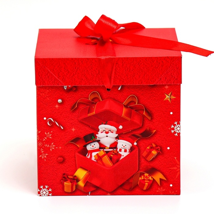 Новый год. Коробка подарочная новогодняя складная "Дед мороз в коробке" 15х15х15 см.