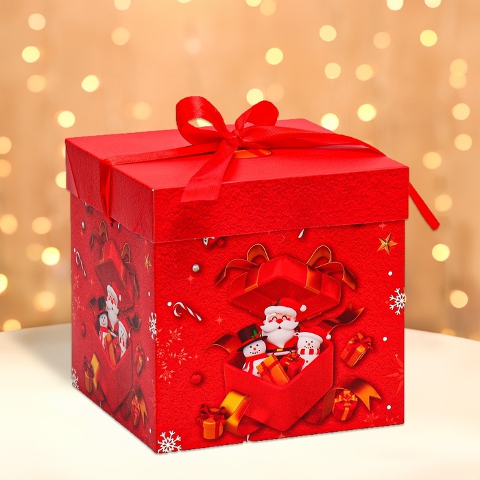 Самосборная новогодняя коробка 15х15х15 см — это практичный и стильный вариант для упаковки подарков.