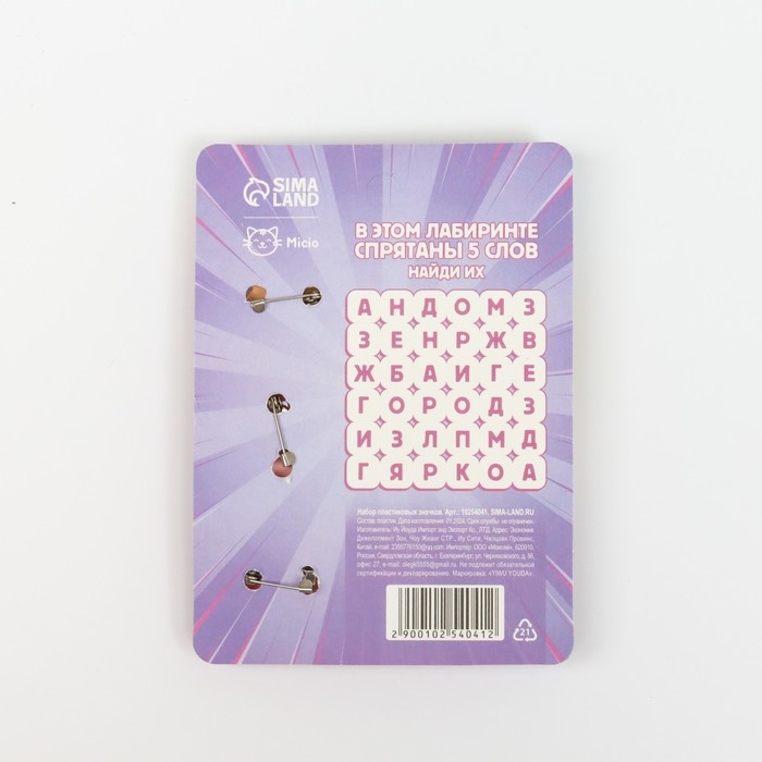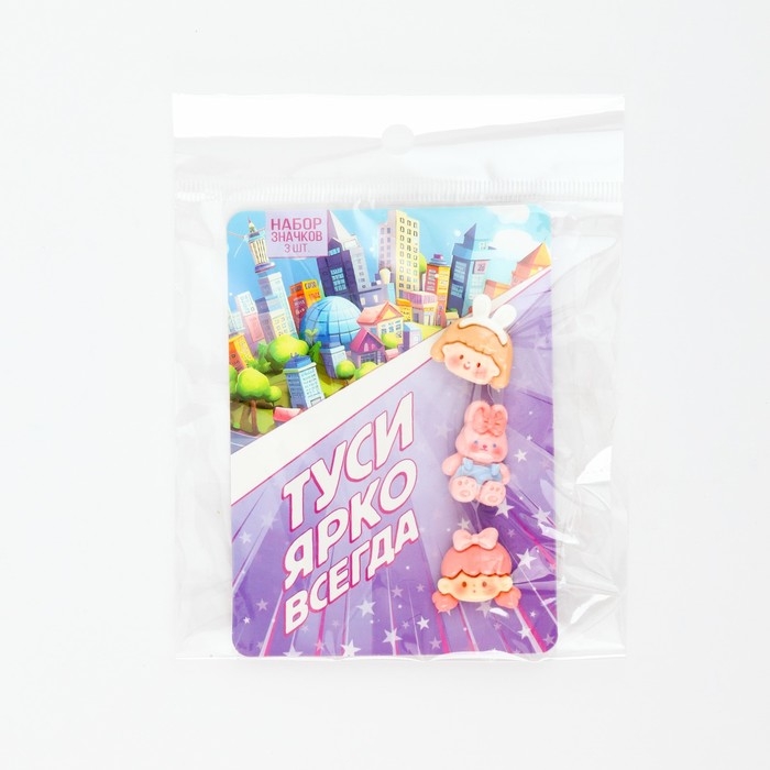 Набор пластиковых значков "Туси ярко всегда", 3 шт, 2,2 х 2 см