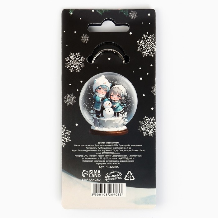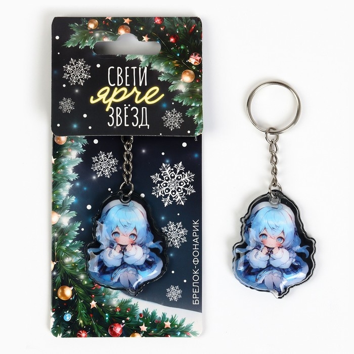 Новогодний брелок с фонариком для ключей «Новый год: Снежинки» 5.3 х 9 см