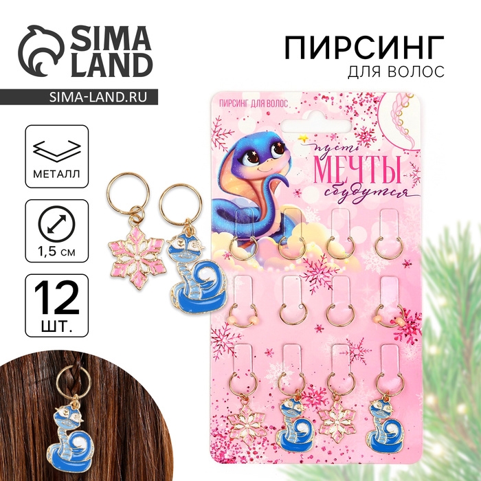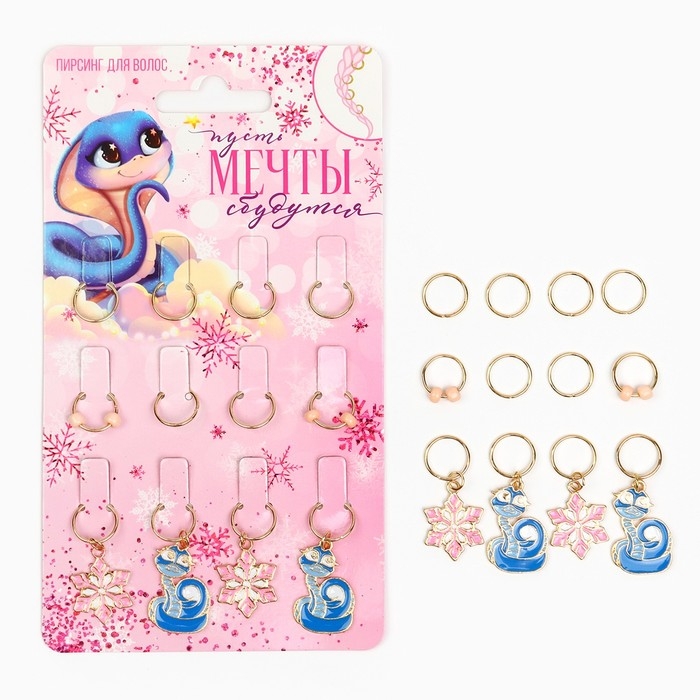 Пирсинг для волос новогодний «Мечты сбудутся» на Новый год, 12 шт