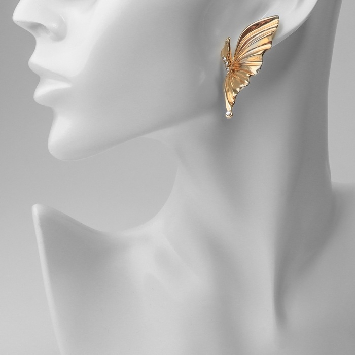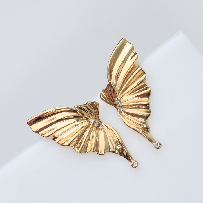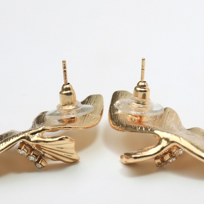 Серьги со стразами «Бантики» крылья, цвет белый в золоте