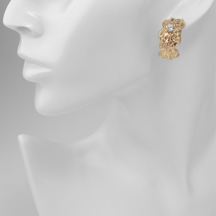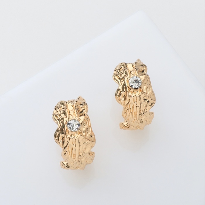 Серьги со стразами «Бесконечность» полусфера, цвет белый в золоте