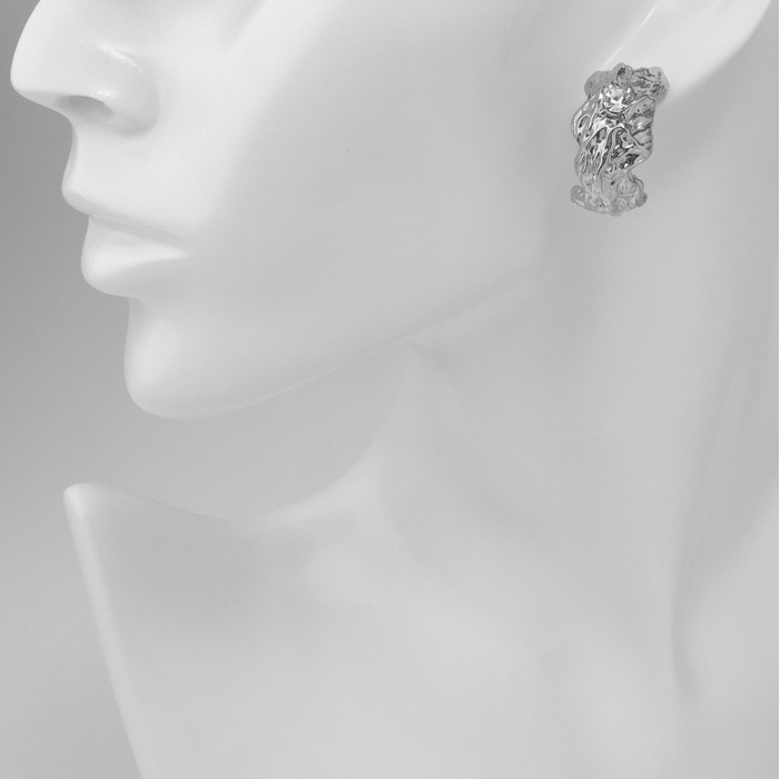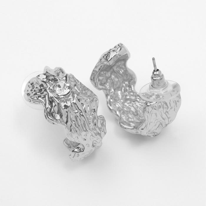 Серьги со стразами «Бесконечность» полусфера, цвет белый в серебре