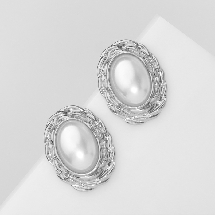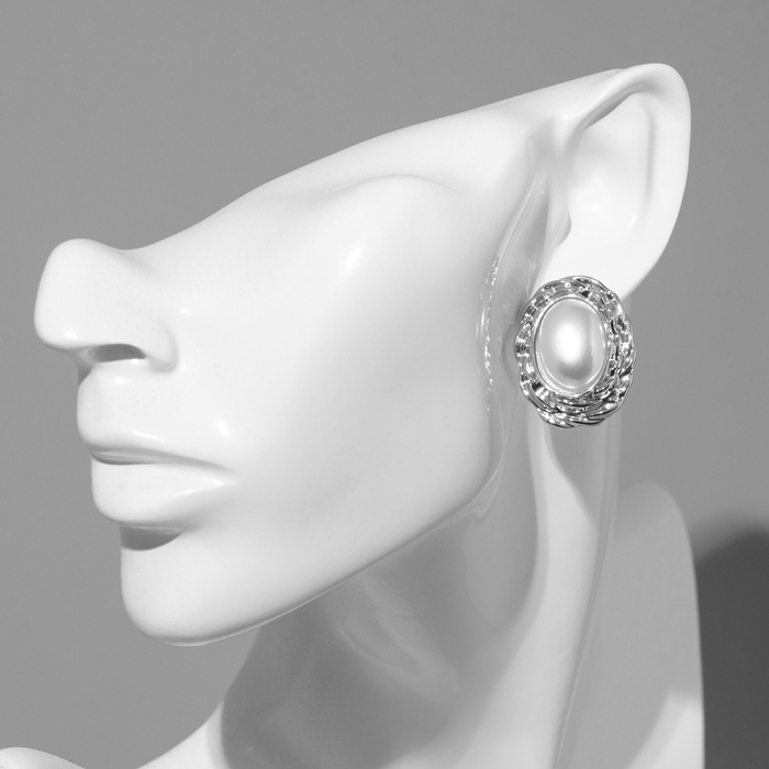 Серьги с жемчугом «Абстракция» зеркало, цвет серебро