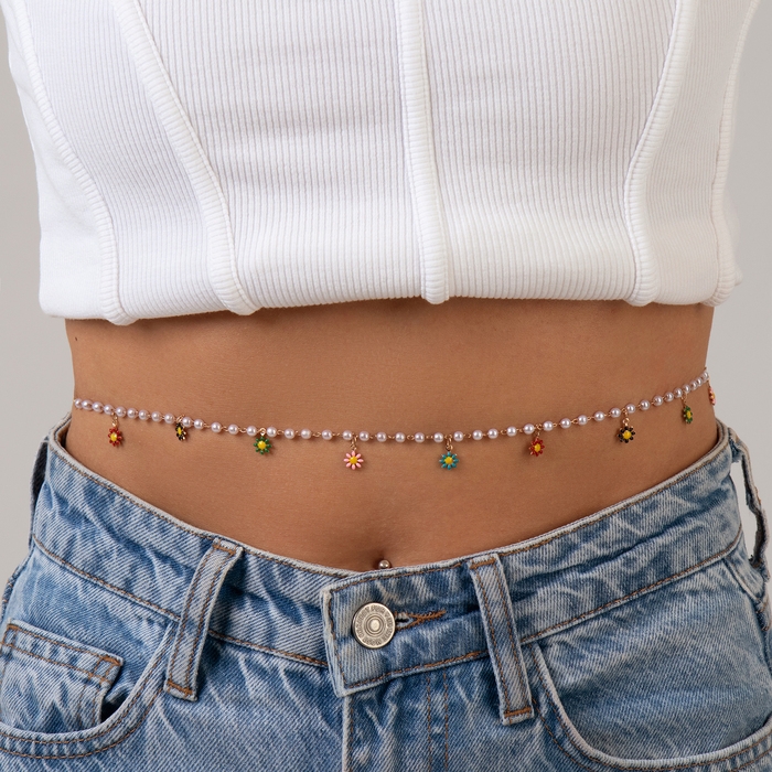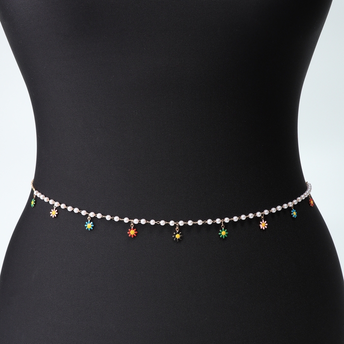 Портупея «Талия» цветы, цветная в золоте, 68 см + 25 см удлинитель