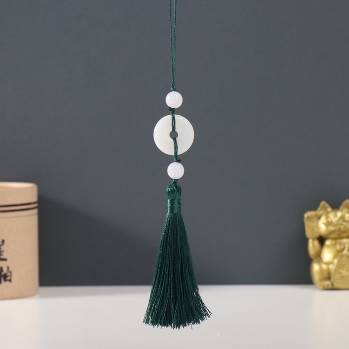 Подвеска текстиль, пластик "Нефритовый кулон" тёмно-зелёная 1х2,5х12,5 см