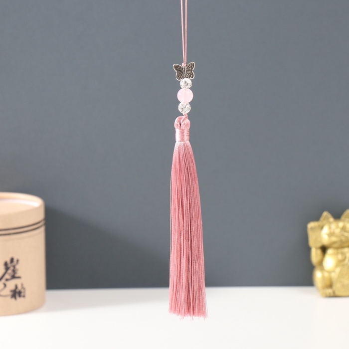 Подвеска текстиль, металл "Бабочка" пыльная роза 1х1,2х16,5 см